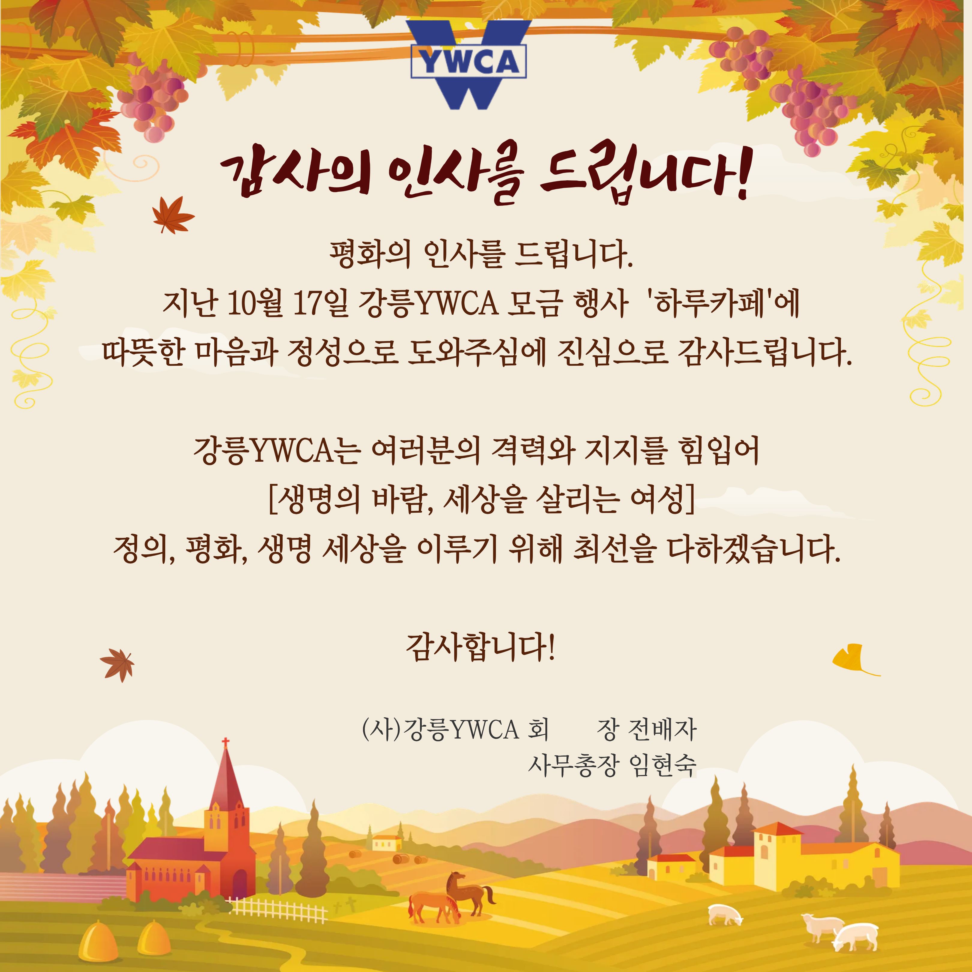 ์ง์ญ์ฌํ์ ํจ๊ปํ๋ ๊ฐ๋ฆYWCA๊ฐ ๋๋๋ก ์ต์ ์ ๋คํ๊ฒ ์ต๋๋ค. ๊ฐ์ฌํฉ๋๋ค๐